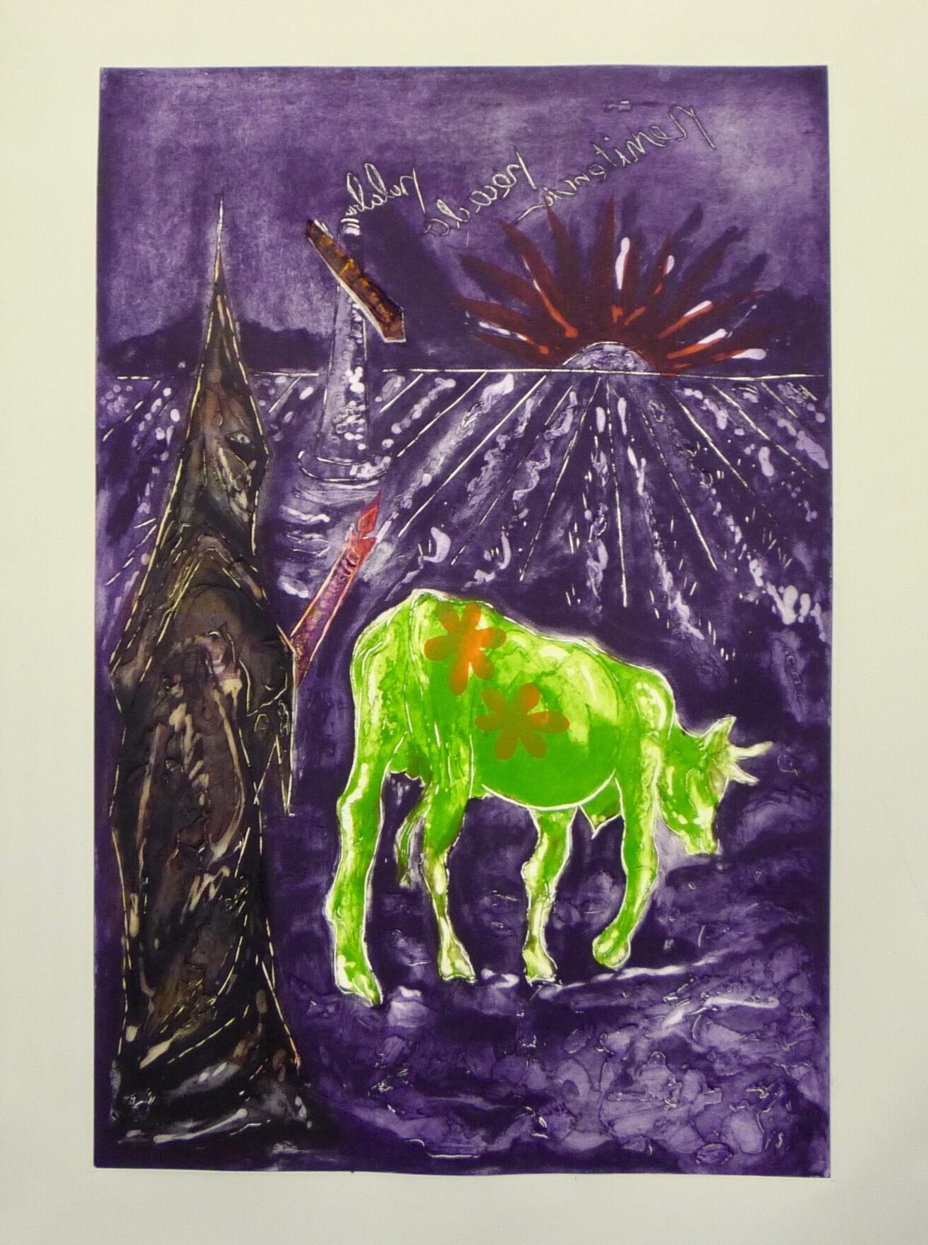 Grabado mural de gran tamaño, donde se despiertan inquietudes.